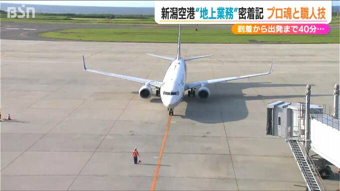 まもなく到着する飛行機の業務を確認する“ブリーフィング”の後いよいよ、伊丹空港から166人乗りの定期便が着陸。ここから慌ただしくなります。