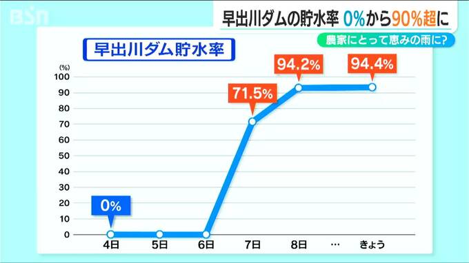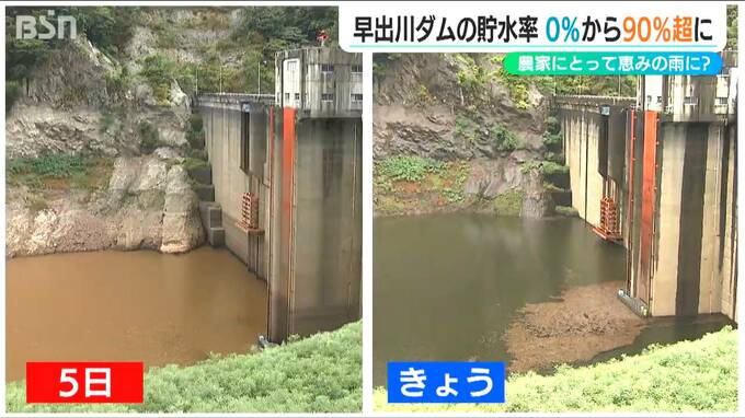 新潟県五泉市に農業用水を送り出している『早出川ダム』は、今夏の記録的な少雨で貯水率が0%になっていましたが、6日から続くこの大雨で、12日午前8時時点での貯水率が一気に94.4%となりました。