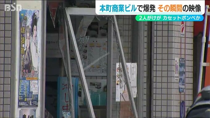 爆発の瞬間をとらえた防犯カメラの映像からは、ビル入り口のガラス戸が粉々に吹き飛ばされ、店舗の外にいた人が驚いている様子が見て取れます。