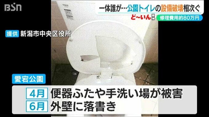 新潟市中央区の複数の公園で、トイレの設備が壊されるなどの被害が相次ぎ、修理のために投入された税金はおよそ80万円になっているということです。