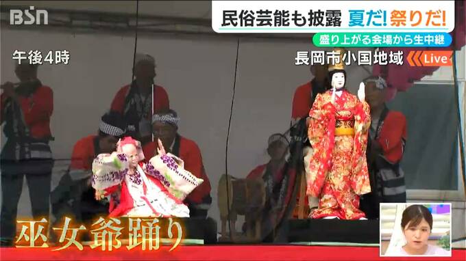 午後3時から始まった『おぐに夏まつり』のステージでは、地域に伝わる民俗芸能『巫女爺踊り(みこじおどり)』も披露されました。