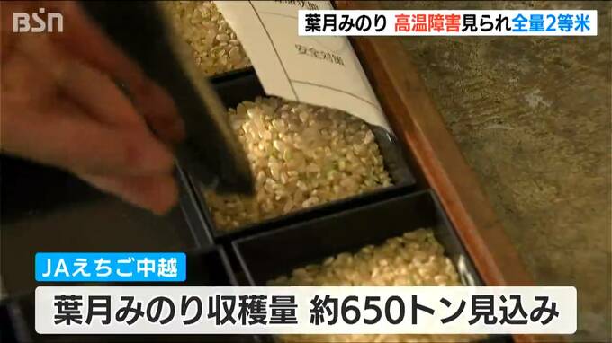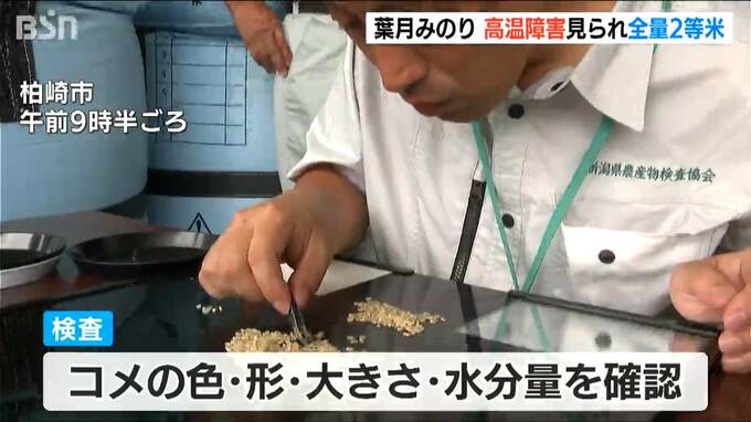 極早生品種、『葉月みのり』の品質検査が19日、新潟県 柏崎市で始まりました。猛暑と雨不足の影響を受け、全量2等米です。