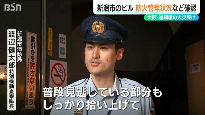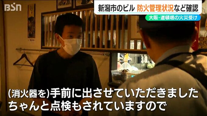 消防隊員2人が亡くなった大阪 道頓堀のビル火災を受け、22日、新潟市消防局が市内の雑居ビルで臨時の立ち入り検査を行いました。