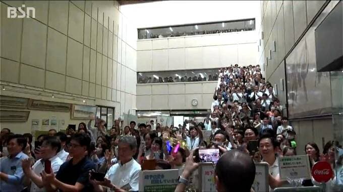 俳優の松平健さんが、22日に上越市役所を訪れ大勢の拍手で迎えられました。