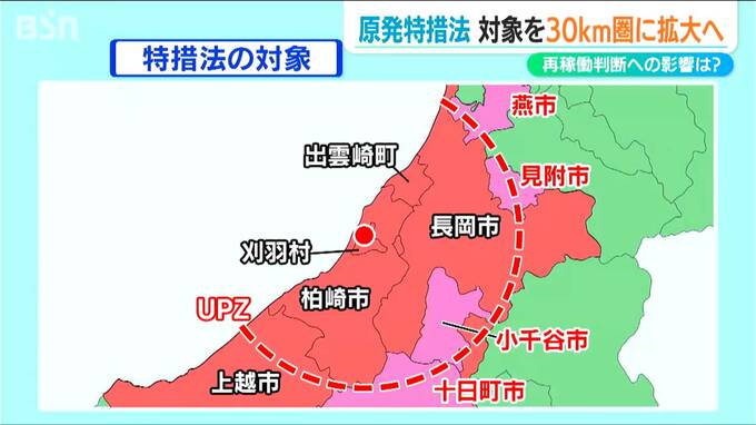 政府はこの対象地域を“災害対策重点区域”となった30km圏内に拡大する方向で検討しており、その場合には、小千谷市・十日町市・見附市・燕市が加わることになります。