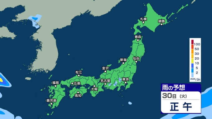 あす10月1日は北日本や東日本で雷伴う“激しい雨”の所も 9月最終日は広く高気圧に覆われるものの局地的に雨【3時間ごとの雨シミュレーション・30日正午更新】 2025年9月30日(火) 16:10 国内 天気 30日(火)の雨シミュレーション