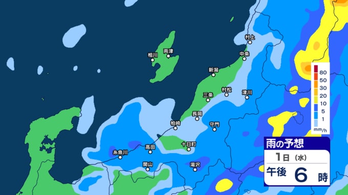 【大雨情報】新潟県内はあす1日“バケツをひっくり返したような”激しい雷雨に? 土砂災害や低地の浸水などに注意・警戒【1時間ごとの雨のシミュレーション・30日午後7時更新】 2025年9月30日(火) 19:00 国内 天気 1日午後6時~午後11時までの雨シミュレーション