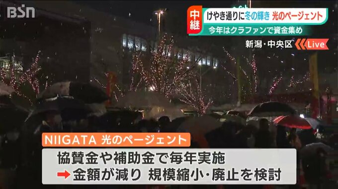 そこで主催する「NIIGATA光のページェント実行委員会」では、今年から実施費用を賄うために“クラウドファンディング”を活用。11月1日から支援金を募り、目標金額の50万円を11月21日に達成しました。