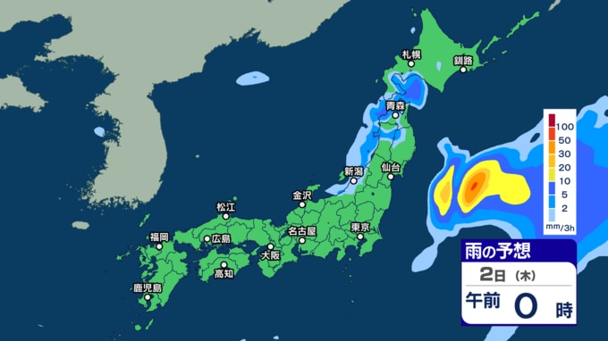 【大雨情報】北日本や東日本では雷を伴う非常に激しい雨や激しい雨の所も 4日は暖かく湿った空気の影響を受け西日本で大雨に?【3時間ごとの雨シミュレーション・1日午後9時更新】 2025年10月1日(水) 21:00 国内 天気 2日(木)の雨シミュレーション