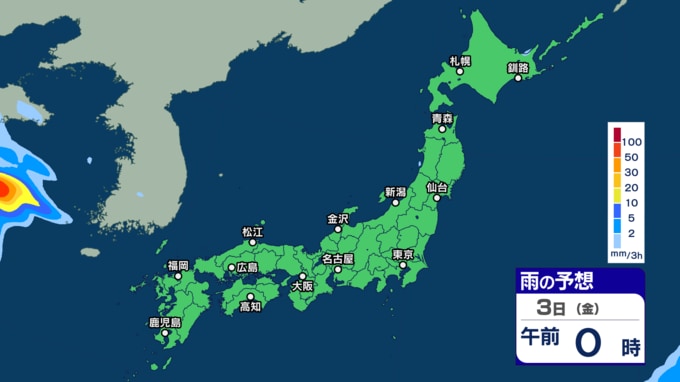 【大雨情報】北日本や東日本では雷を伴う非常に激しい雨や激しい雨の所も 4日は暖かく湿った空気の影響を受け西日本で大雨に?【3時間ごとの雨シミュレーション・1日午後9時更新】 2025年10月1日(水) 21:00 国内 天気 3日(金)の雨シミュレーション