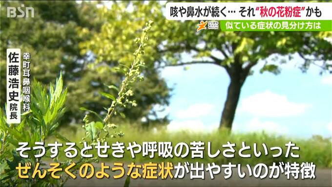 「(雑草の花粉は)粒子が小さい分、体の気管や気管支といった気道の奥のほうまで花粉が入り込んでくる可能性が高くなる。そうすると咳や呼吸の苦しさといった、ぜんそくのような症状が出やすいのが特徴」