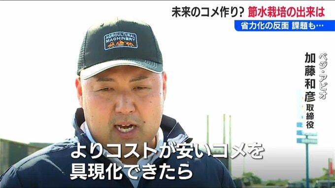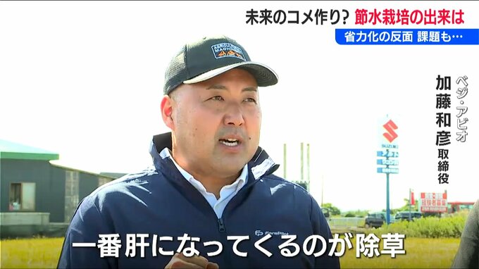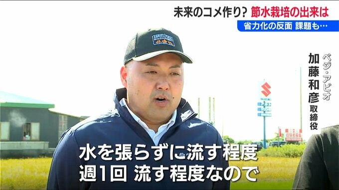 【ベジ・アビオ 加藤和彦 取締役】「“節水型乾田直播栽培”というところで、水を張らずに流す程度、週1回流す程度なので、毎日の水管理から解放されて、労力が削減できる」