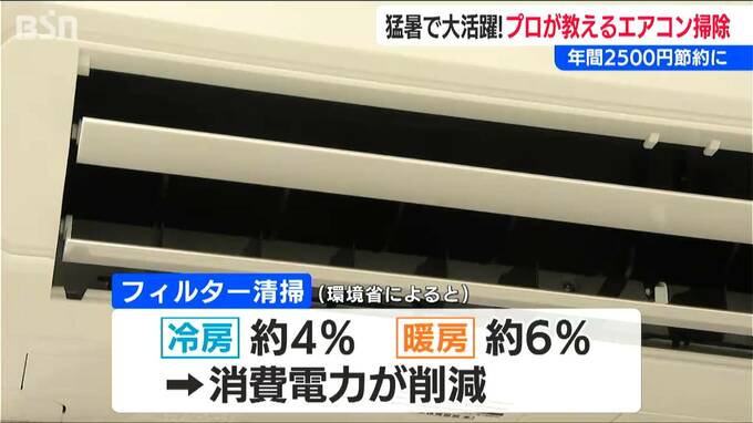 環境省によりますと“フィルターの掃除”をするだけでも、冷房時でおよそ4%、暖房時でおよそ6%の消費電力が削減されるということです。