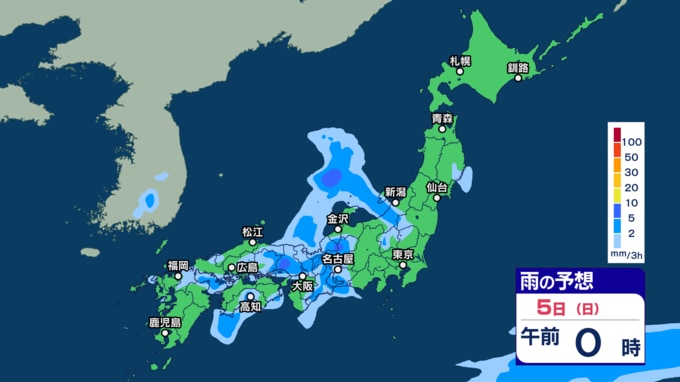 あす5日(日)にかけて雷を伴った激しい雨や非常に激しい雨の所も 西~東日本では土砂災害などに注意・警戒 週明け6日(月)も急な強い雨などに注意【3時間ごとの雨シミュレーション・4日午後9時更新】
