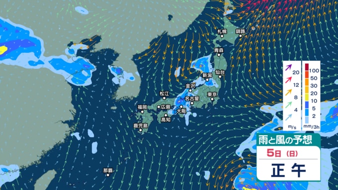 きょう5日(日)は北日本~西日本で強い雨などに注意 あす6日(月)午前中にかけて東北…
