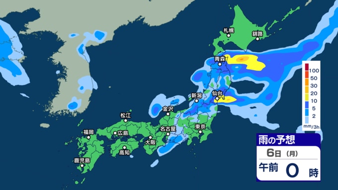 きょう5日(日)は北日本~西日本で強い雨などに注意 あす6日(月)午前中にかけて東北…
