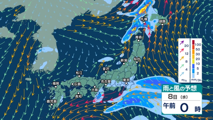 3. あす7日以降は太平洋側中心に台風22号の影響も 8日は発達する低気圧や寒気の影響で北日本でも雨風が強まる恐れ【3時間ごとの雨と風のシミュレーション・6日正午更新】
