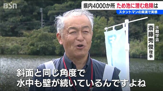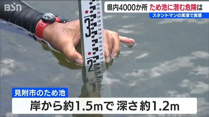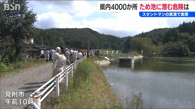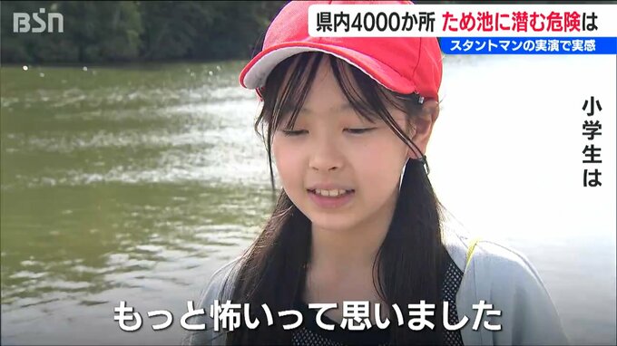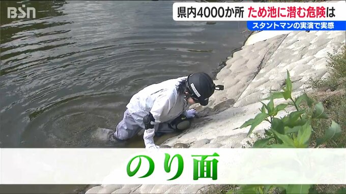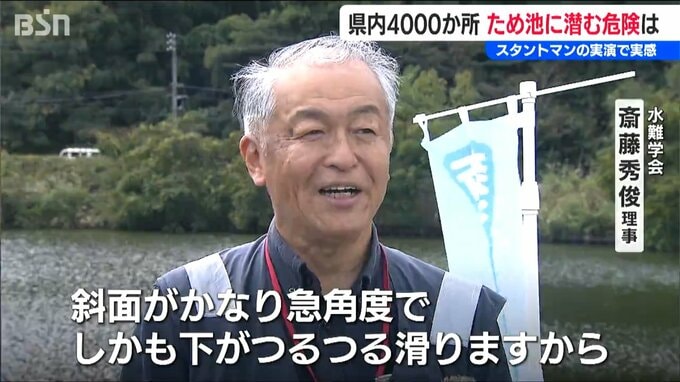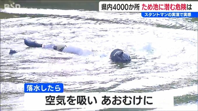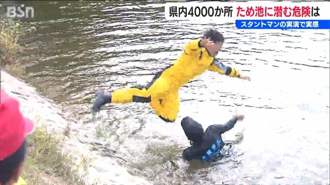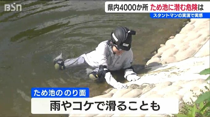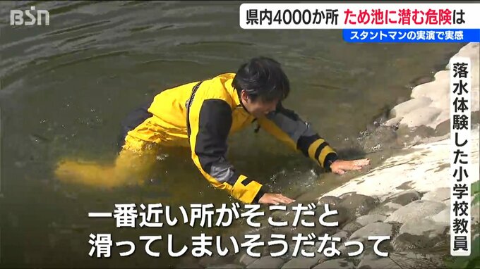 新潟県内におよそ4000か所ある『ため池』見附市にある農業用のため池で6日、その危険性を体感するイベントが開かれました。スタントマンの実演で見えた、ため池に潜む危険とは?