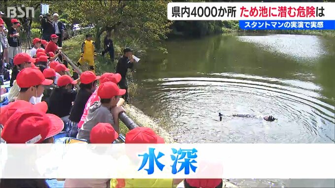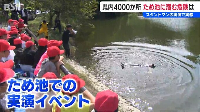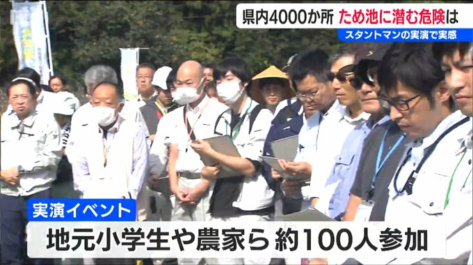 ため池に潜む危険を知ってもらおうと、県などが企画した実演イベントです。