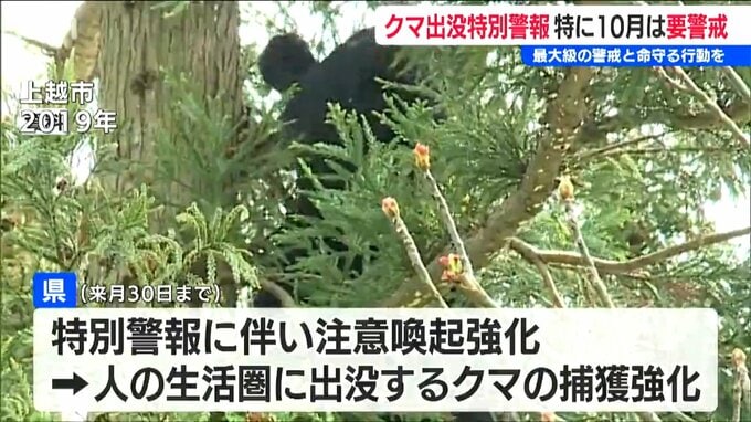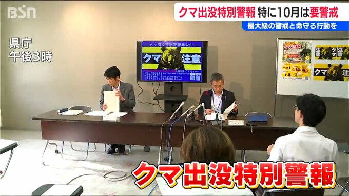 特別警報に伴う警戒強化期間は来月30日までで、県は注意喚起を強化するとともに、人の生活圏に出没するクマの捕獲も強化するということです。