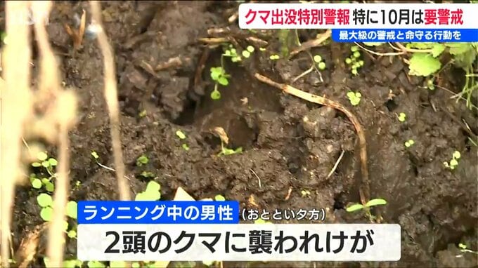 4日夕方、ランニングをしていた男性が2頭のクマに襲われけがをしたということです。