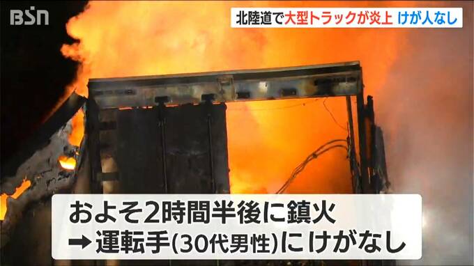 警察によりますと、上越市頸城区上三分一を通る北陸道上り線で、6日午後7時20分ころ、トラックの運転手から「助手席側の前輪付近から出火している」と110番通報がありました。
