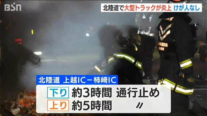 新潟県上越市を通る北陸道で6日夜、大型トラックが燃える車両火災がありました。けがをした人はいません。