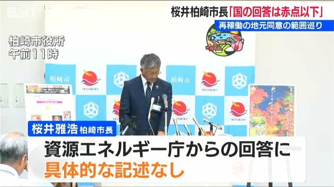 「国の回答は赤点以下」“地元同意の範囲”を明確にしてほしいと国に要望していた柏崎市の桜井 市長が厳しい見方を示しました。