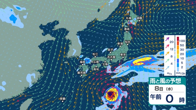 【台風情報】台風22号は“非常に強い”勢力に発達 伊豆諸島では9日は住宅倒壊の恐れもある猛烈な風の恐れ【進路予想・3時間ごとの雨と風のシミュレーション・7日午後9時50分発表】