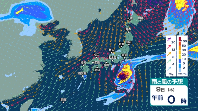【台風情報】台風22号は“非常に強い”勢力に発達 伊豆諸島では9日は住宅倒壊の恐れもある猛烈な風の恐れ【進路予想・3時間ごとの雨と風のシミュレーション・7日午後9時50分発表】