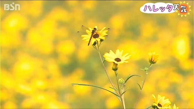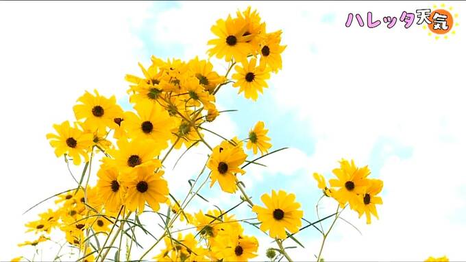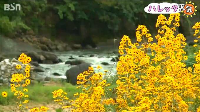 秋晴れの新潟県上越市では『ヤナギバヒマワリ』が見ごろを迎えています。