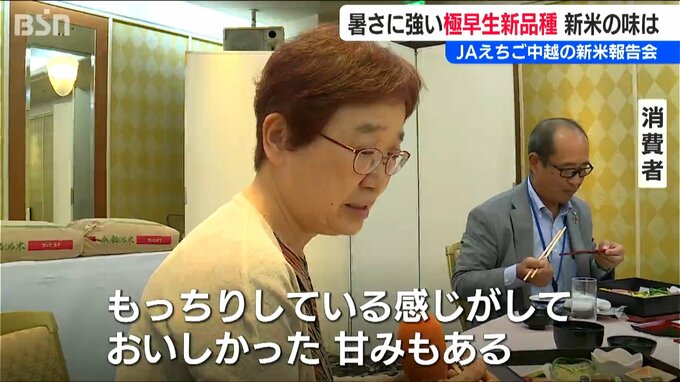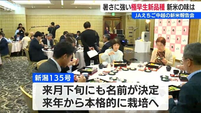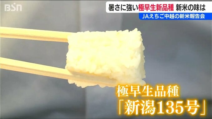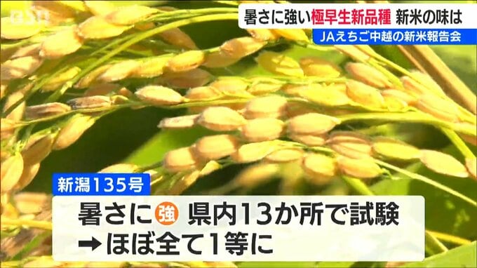 暑さに強いのが特徴で、今年は新潟市 西蒲区など県内13か所で試験栽培していましたが、ほぼ全てが1等米だったということです。肝心の味は…。