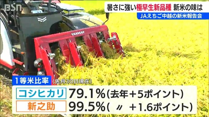 一方、先月末現在の県産米の1等米比率はコシヒカリが79.1パーセント、「新之助」が99.5パーセントでともに去年を上回っていることが県のまとめでわかりました。