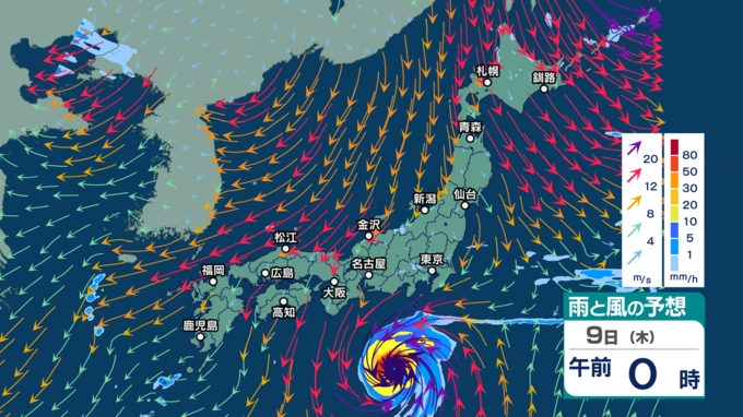 【台風情報】台風22号は9日明け方から朝にかけて伊豆諸島に最接近へ 最大瞬間風速70メートル予想 最大級の警戒を【進路予想・1時間ごとの雨と風のシミュレーション・8日午後11時15分発表】 2025年10月8日(水) 23:28 国内 天気