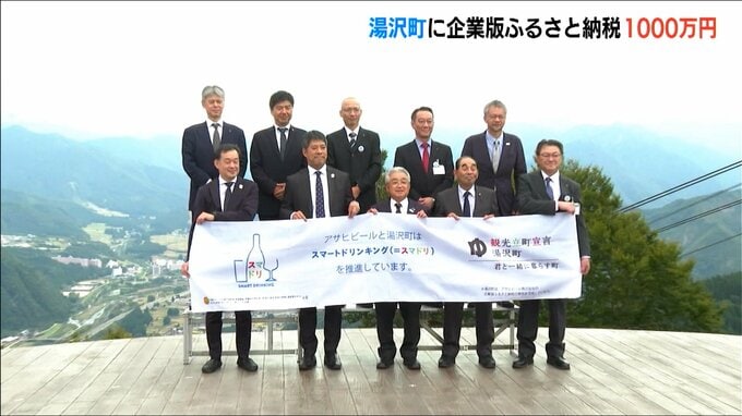 新潟県湯沢町の企業版ふるさと納税制度を使い『アサヒビール』が8日、寄付金1000万円を贈呈しました。