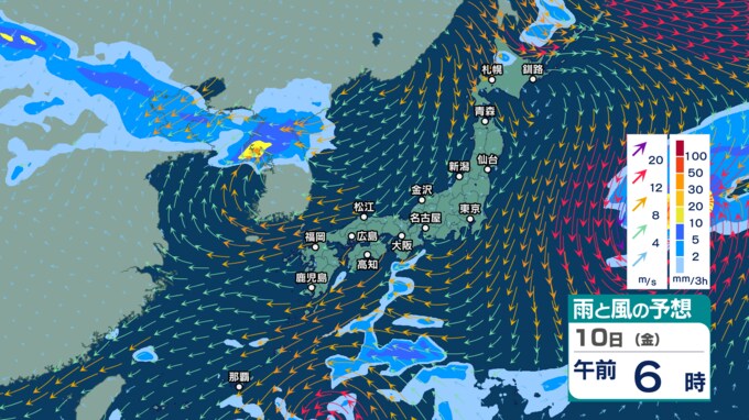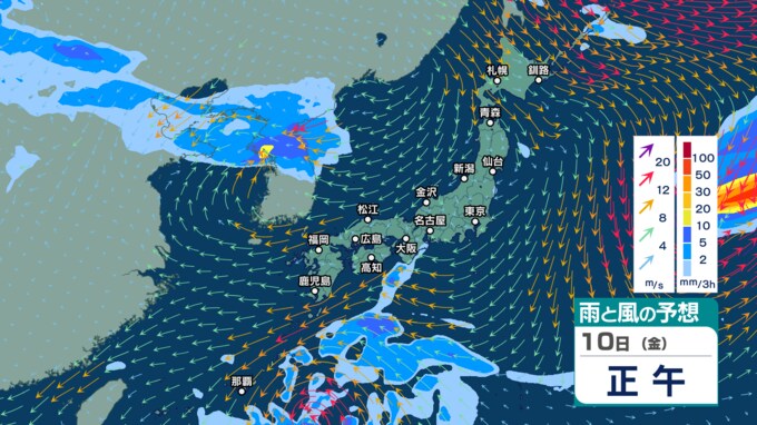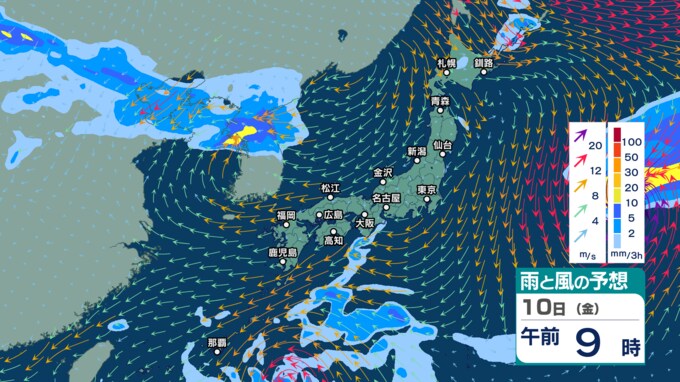 11日(土曜日)の『雨と風の予想』シミュレーション図