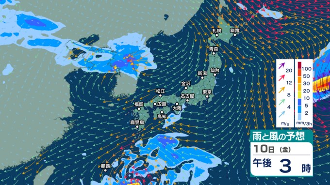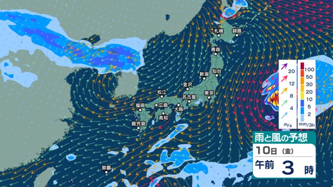 3. 『台風23号』は11日(土)~12日(日)頃にかけて沖縄地方や九州南部・奄美地方に接近するおそれ【3時間ごとの雨と風のシミュレーション 9日午後10時30分更新】