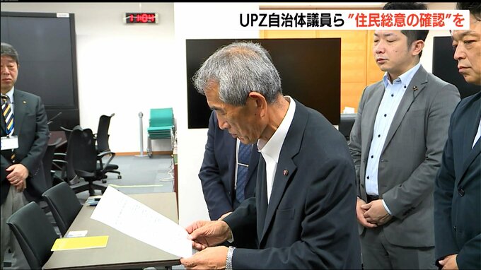 『UPZ議員研究会』はこれに対し、「UPZ圏内自治体および住民の意思を確認しないまま判断することは、県民の安全を守る責務を全うしていない」として、住民総意の確認や首長との懇談を再度個別に行うよう、今回の申し入れを行いました。