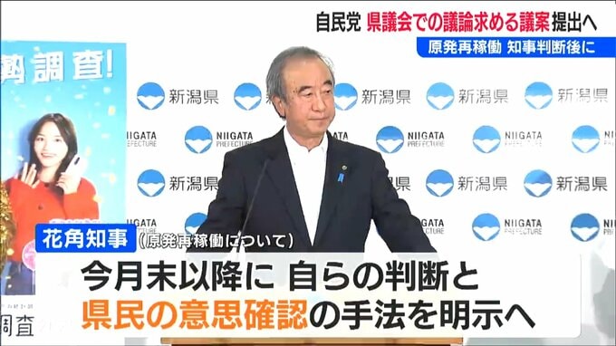 原発再稼働をめぐり今月末以降に示される花角知事の判断。自民党県議団が知事が判断を示した後に県議会で議論するよう求める旨の議案を提出する方向で調整していることがわかりました。
