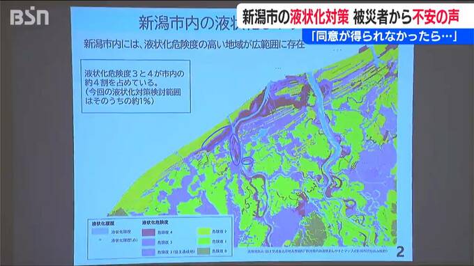 新潟市は、液状化現象対策の工事費を全額公費でまかない、住民には設備の維持管理費として1坪当たり5250円を求める方針で、説明会では生活保護世帯などの負担を全額免除することなどを説明しました。