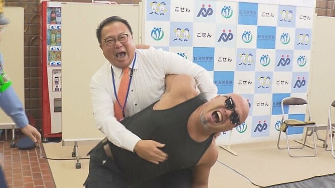 市長×警察署長×プロレスラーがタッグ 特殊詐欺を防げ! 市役所でプロレス 市長が“受け子”にコブラツイスト 新潟県五泉市 2025年10月14日(火) 19:09 国内 新潟県の五泉市役所でプロレスの試合が行われました。闘っているのはプロレスラーに五泉市の田辺正幸長、そして五泉警察署長。実は特殊詐欺防止イベントなのです。五泉市役所で行われた防犯グッズの贈呈式。そこに…