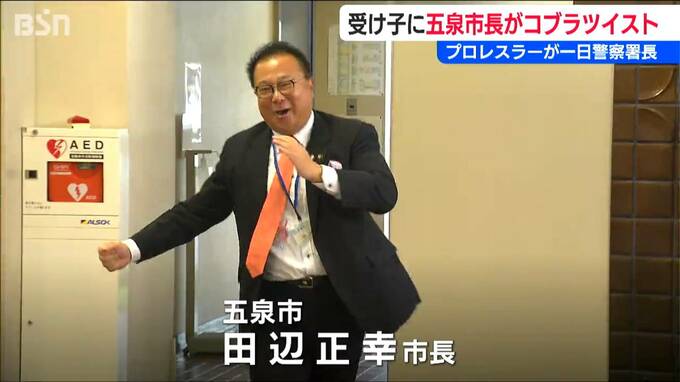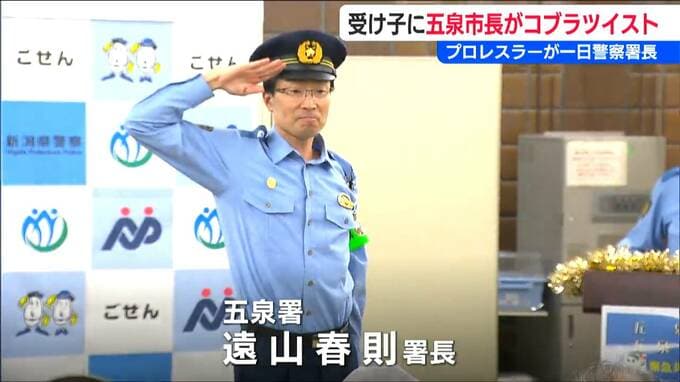 そこに登場したのは、五泉署の遠山春則署長。さらに五泉市の田辺正幸市長も…