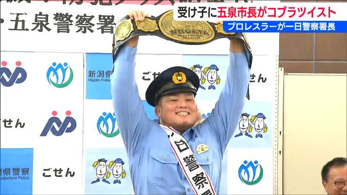 そして、最後に入場したのは新潟プロレスのレスラーで、五泉市出身の鈴木敬喜選手。この日は“一日警察署長”としてプレゼンターを務めます。
