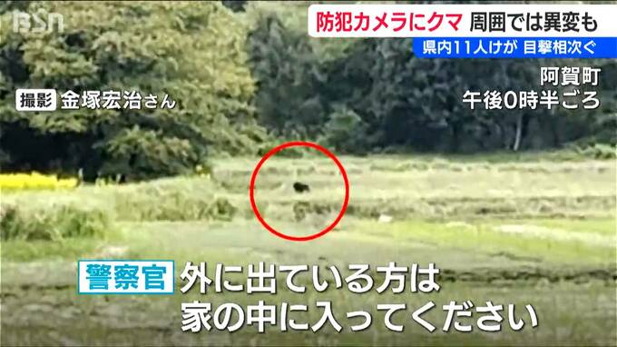 「現在、この近くにクマが出ています。外に出ている方は家の中に入ってください」