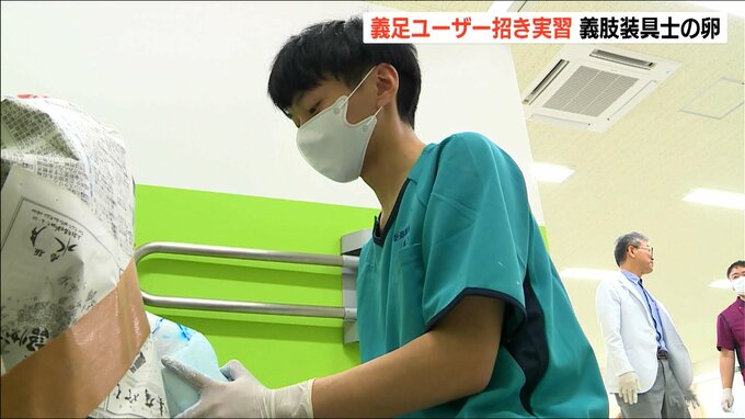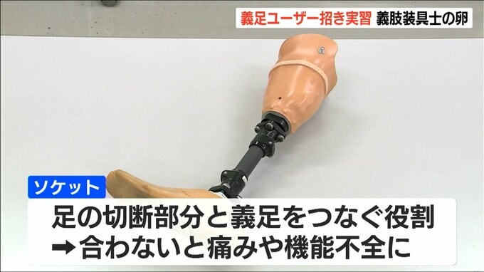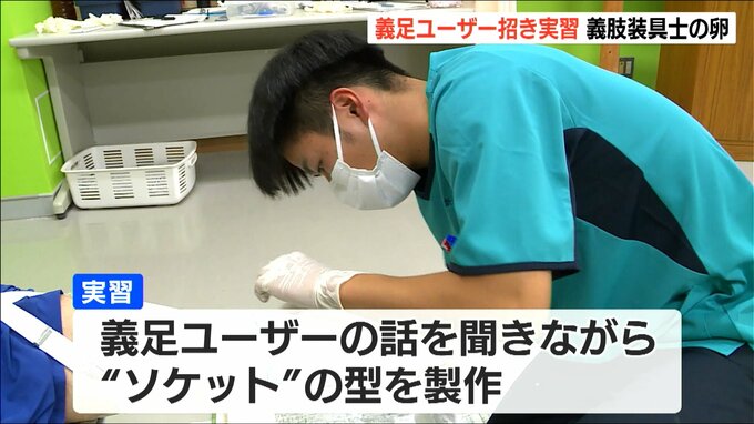 義手や義足をつくる義肢装具士を目指す学生が義足のユーザーを招いて実習を行いました。
