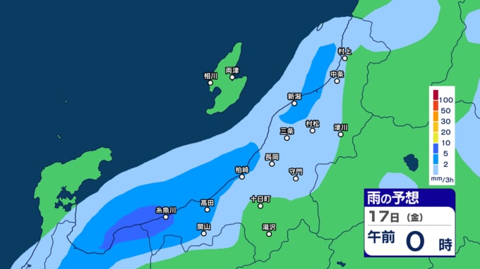 あす16日は新潟県で雷を伴い1時間に30ミリの激しい雨の恐れも 土砂災害や低地の浸水などに注意・警戒【今後の雨のシミュレーション・15日正午更新】