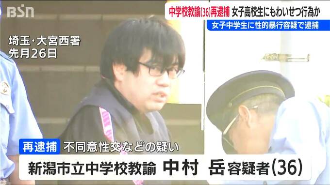 女子中学生に性的暴行を加えたなどとして逮捕されていた新潟市の中学校教諭の男が、さらに別の女子高校生にもわいせつな行為をし撮影していたとして再逮捕されました。
