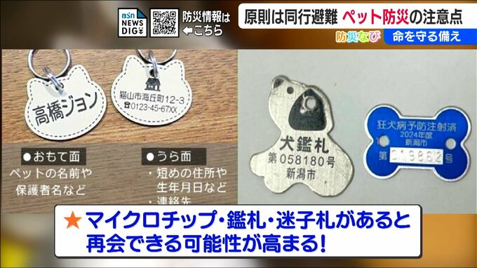 また、マイクロチップに加えて鑑札や迷子札を首輪などにつけておくと、災害で離ればなれになったとしても再会できる可能性が高まるということです。