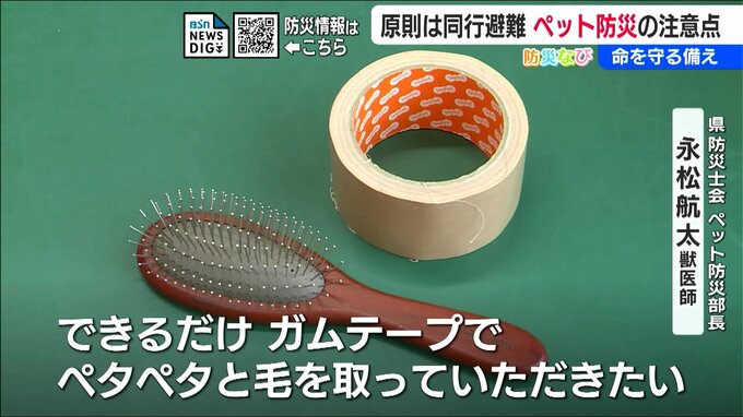 「人とかに(毛が)くっついた服で避難所の中に入ってしまうと、犬猫のアレルギーの方がアレルギーを発症してしまうことがあるので、できるだけガムテープでペタペタ毛を取っていただきたい」