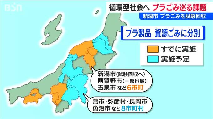プラマークがついていない「プラスチック製品ごみ」を資源ごみとして分別している市町村は現在、試験回収を始めた新潟市を含めて6市町のみ。(阿賀野市は一部地域で実施)